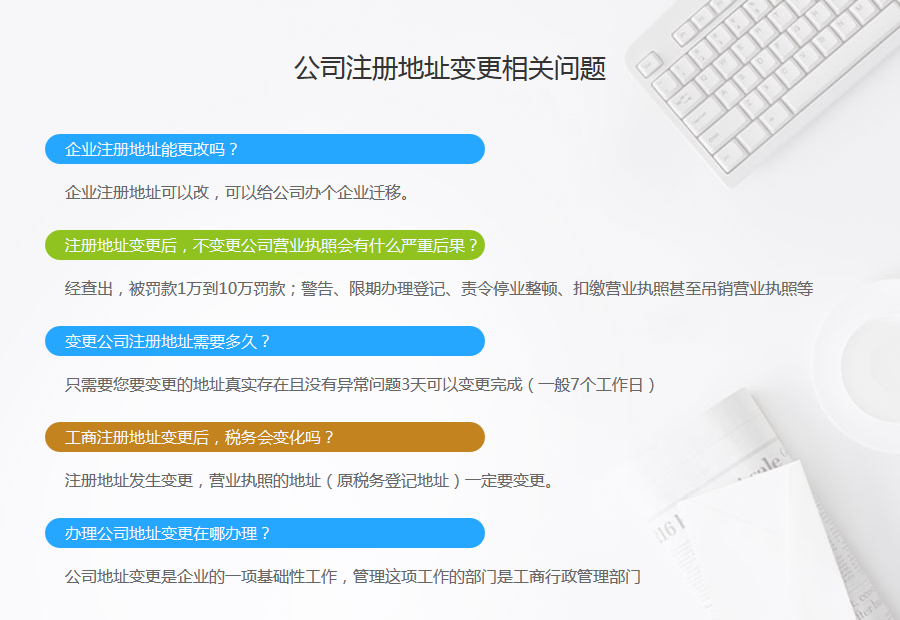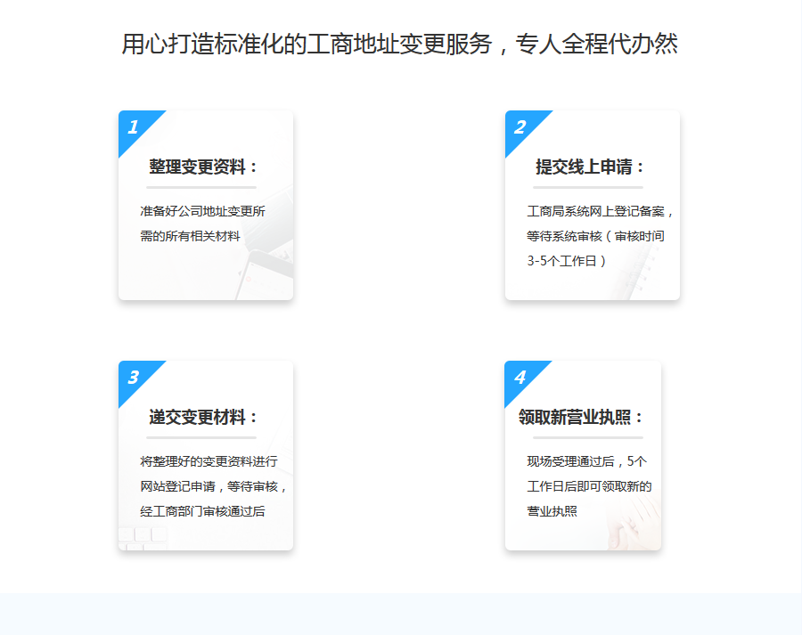 1、完成工商部门登记的地址变更及税务部门的备案(不含税务迁出、变更);